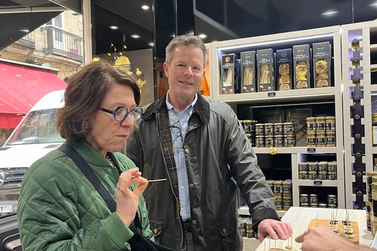 3 BewertungenDie Bordeaux Deluxe Gourmet Tour nimmt dich mit auf eine Entdeckungsreise durch die kulinarische Szene von Bordeaux. Probiere die besten Bordeaux-Köstlichkeiten der Stadt: Käse, Austern, Trüffelprodukte, Charcuterie, Wein und süße Leckereien!