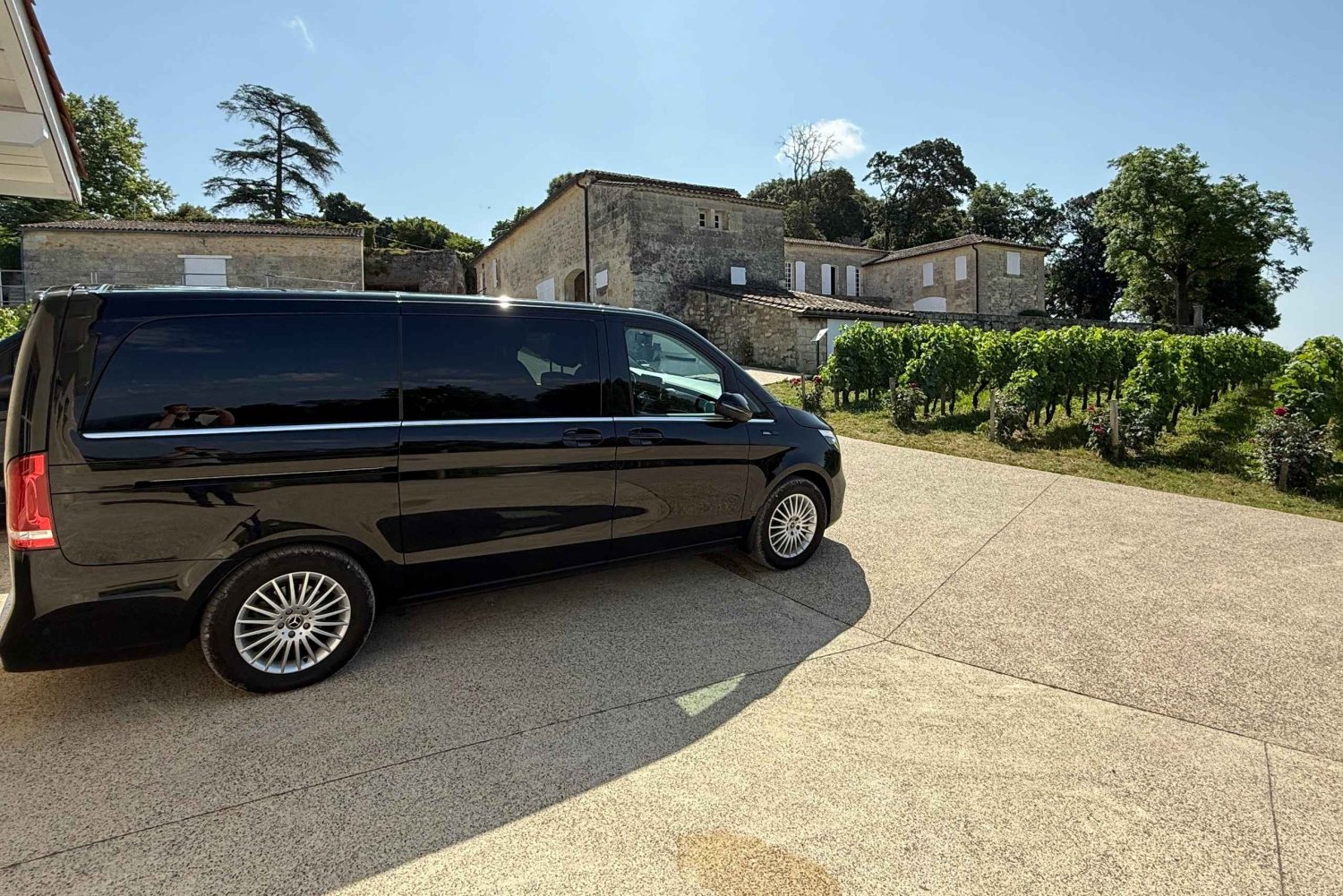 1 BewertungenBegib dich auf eine exklusive Weintour durch Saint-Émilion an Bord eines luxuriösen Minivans und entdecke das reiche Erbe der Region und die berühmten Châteaux.