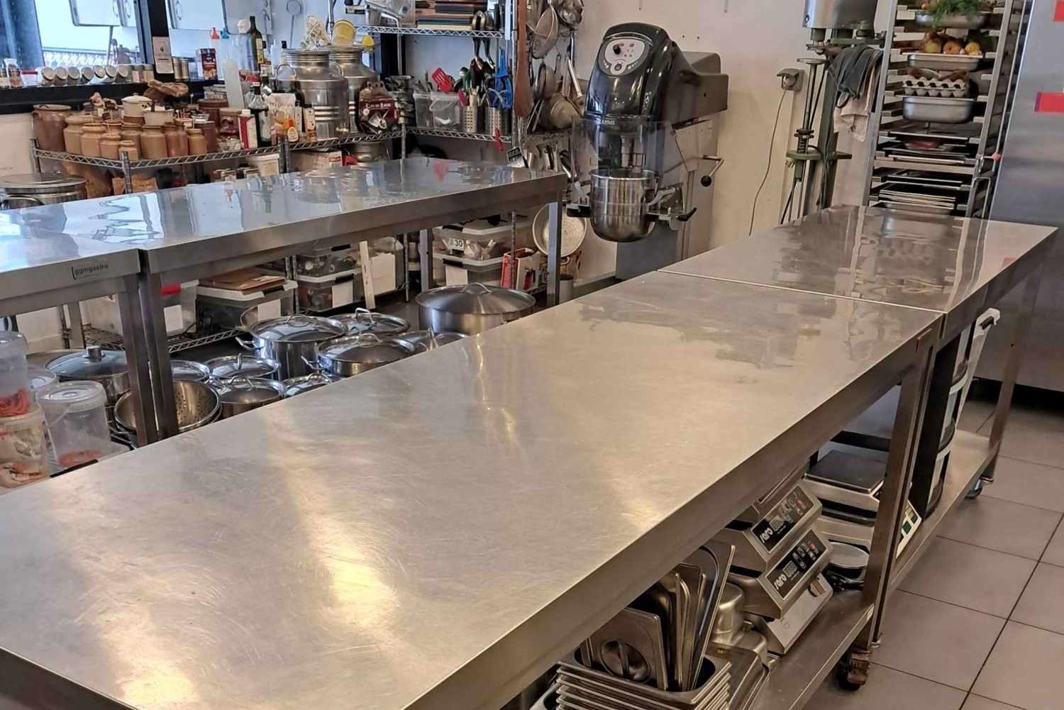 Poussez les pTout commence dans notre atelier lumineux à Bègles. Les tabliers se nouent. Les couteaux s’alignent. Les effluves d’herbes fraîches et de beurre noisette éveillent déjà les papilles. Le chef vous accueille avec un mot de bienvenue et un aperçu du menu du jour. Trois actes pour un même plaisir. Entrée. Plat. Dessert. Pendant deux heures, chacun met la main à la pâte. On découpe. On cisèle. On flambe. On monte une sauce brillante. On apprend à doser, à assaisonner, à cuire juste. À oser aussi. L’ambiance est joyeuse, rythmée par le cliquetis des ustensiles et les éclats de rire. Le chef circule, conseille, corrige, partage ses astuces de pro et ses secrets de grand-mère. On goûte, on ajuste, on s’émerveille de voir le plat prendre forme sous ses doigts. Les gestes deviennent plus précis. Les textures s’affinent. Les parfums se mêlent. L’art de la bistronomie se révèle dans cette alliance subtile entre tradition et modernité. Une pincée d’audace, une touche de générosité, un brin de poésie dans l’assiette. Les participants découvrent le plaisir rare de cuisiner ensemble, de transformer de simples produits en véritables créations gourmandes. Vient ensuite le moment tant attendu. La dégustation. Une grande table dressée. Des verres qui scintillent. Trois assiettes à savourer lentement. Entrée, plat, dessert, accompagnés de vins soigneusement choisis pour sublimer chaque bouchée. Le chef raconte les accords. Les conversations se croisent. Les rires fusent. L’atmosphère se détend encore un peu plus. Et puis il y a les petites surprises de La Grande Bouche. Un amuse-bouche inattendu. Une conserve maison à découvrir. Une douceur de fin de repas. Autant d’instants complices qui font la signature de nos ateliers. On repart le sourire aux lèvres, le carnet de recettes plein d’idées et la tête légère de tout ce qu’on a appris. C’est ça, un cours de cuisine bistronomique à La Grande Bouche. Un moment à vivre. À partager. À savourer.ortes de notre atelier pour découvrir la cuisine française,Includes